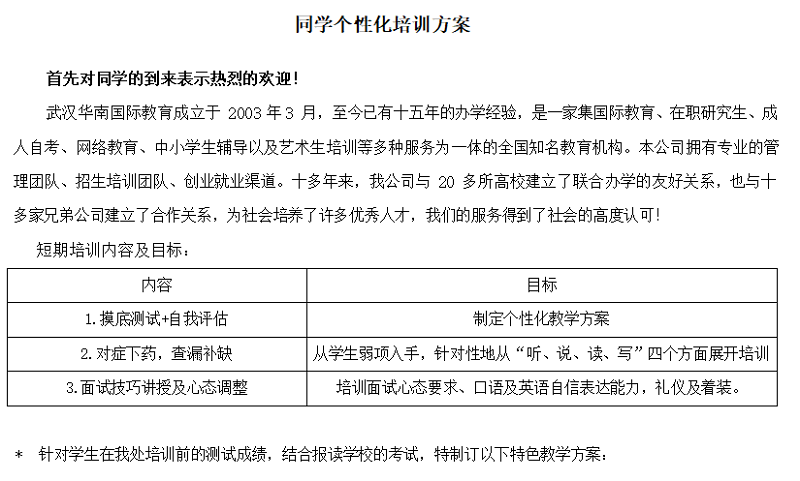 入学前需经过成绩测试,根据学生的实际情况,以及学生的考试成绩,制定最适合学生的个性化培训方案。